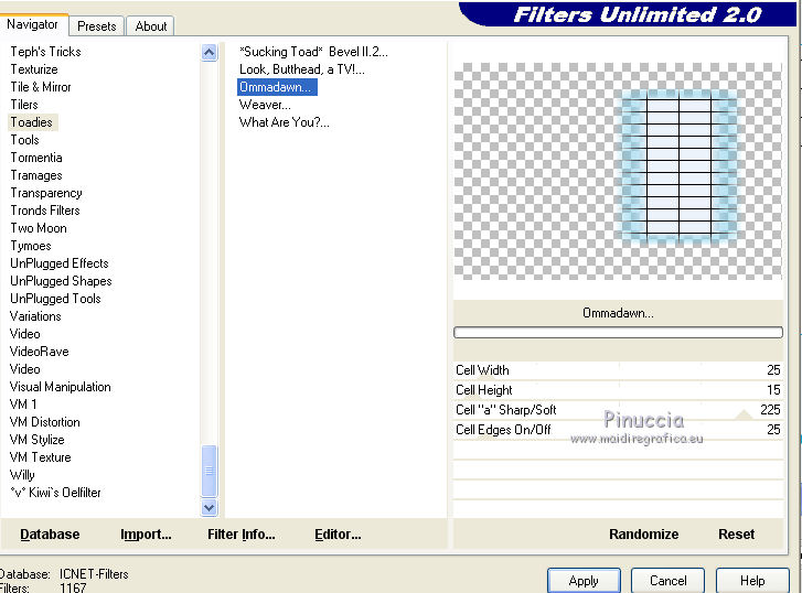 54. Effetti>Plugins>Toadies - Ommadawn, cambia soltanto Cell Width con 10 e ok.