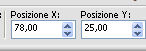 Imposta Posizione X: 78,00 e Posizione Y: 25,00.
