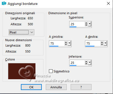 Immagine>Aggiungi bordatura, simmetriche non selezionato, colore di sfondo.