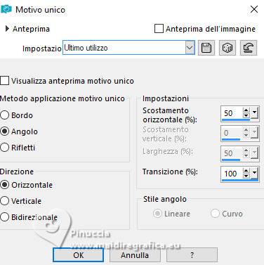 9. Effetti>Effetti di immagine>Motivo unico, Orizzontale selezionato.