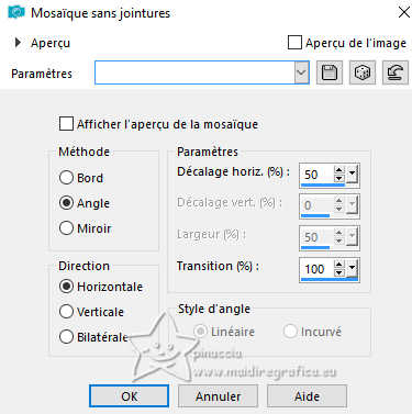 4. Effets>Effets d'image>Mosaïque sans jointures, par défaut.