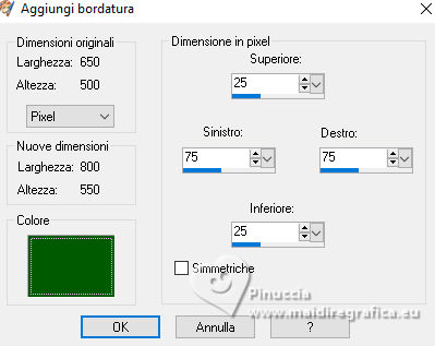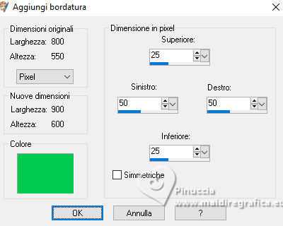 Immagine>Aggiungi bordatura, simmetriche non selezionato, colore di sfondo.