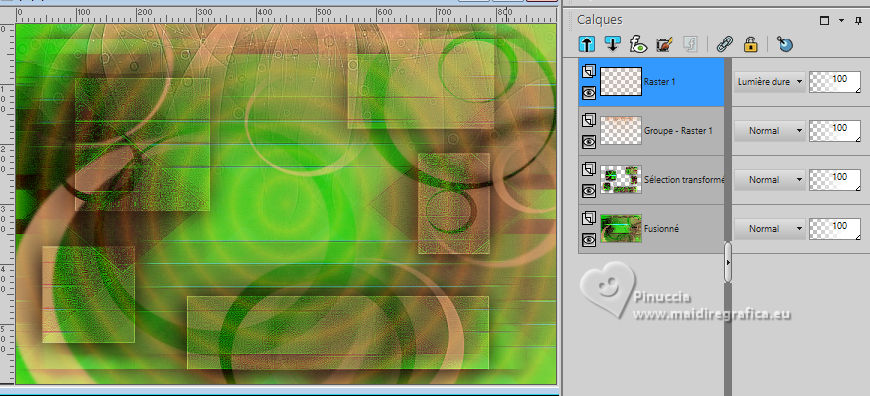 5. Placer ce calque en mode Lumière dure et réduire l'opacité à 50%.