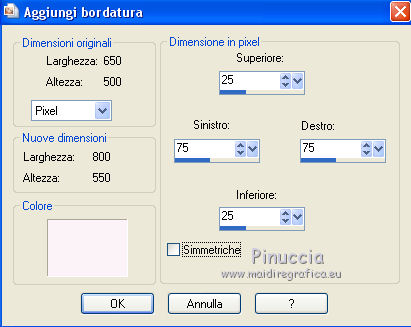 Immagine>Aggiungi bordatura, simmetriche non selezionato, colore di sfondo.