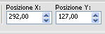 Imposta Posizione X: 292,00 e Posizione Y: 127,00.