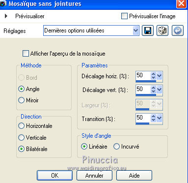 4. Effets>Effets d'image>Mosaïque sans jointures, par défaut.
