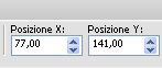 Imposta Posizione X: 77,00 e Posizione Y: 141,00.