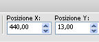 Imposta Posizione X: 440,00 e Posizione Y: 13,00.