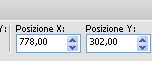 Imposta Posizione X: 778,00 e Posizione Y: 302,00.