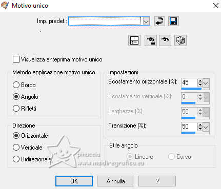 56. Effetti>Effetti di immagine>Motivo unico, con i settaggi precedenti, ma bidirezionale selezionato.