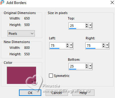Image>Add borders, 30 pixels, symmetric, foreground color.