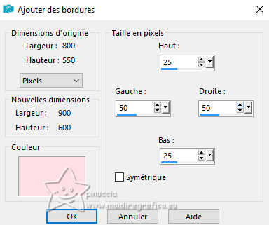 Image>Ajouter des bordures, symétrique décoché, couleur d'arrière plan.