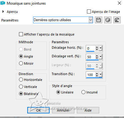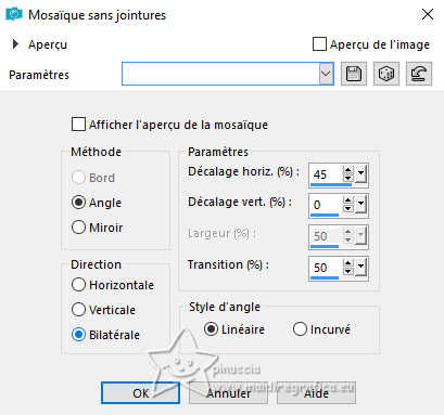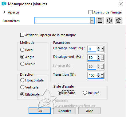 20. Effets>Effets d'image>Mosaïque sans jointures, Bilatérale coché.