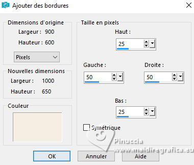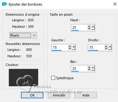 Image>Ajouter des bordures, symétrique décoché, couleur d'arrière plan.