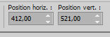 Placer Position horiz.: 412,00 et Position vert.: 521,00.