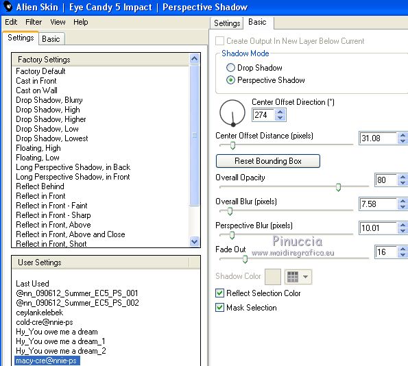 47. Effets>Modules Externes>Alien Skin Eye Candy 5 Impact - Perspective Shadow.