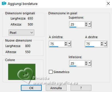 Immagine>Aggiungi bordatura, simmetriche non selezionato, colore di sfondo.