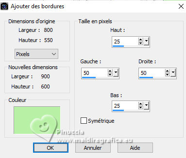 Image>Ajouter des bordures, symétrique décoché, couleur d'arrière plan.