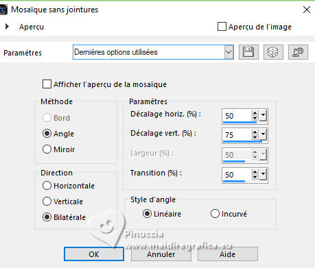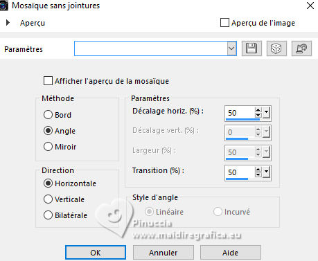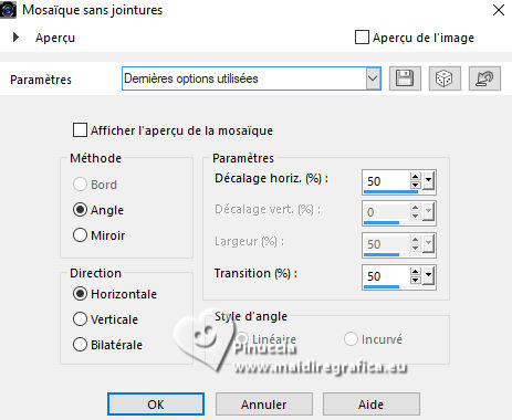 6. Effets>Effets d'image>Mosaïque sans jointures, par défaut.