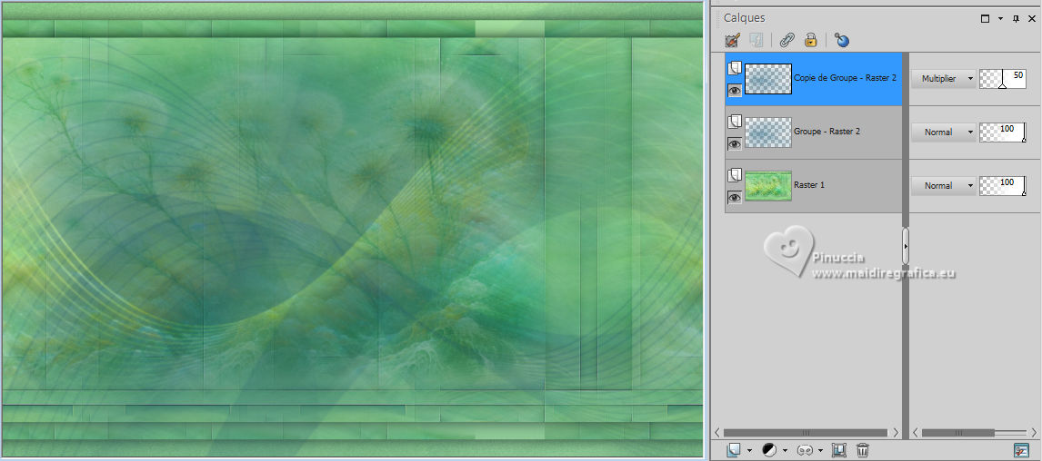 Placer le calque en mode Multiplier et réduire l'opacité à 50%.