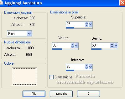 Immagine>Aggiungi bordatura, simmetriche non selezionato, colore di sfondo.