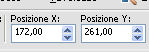mantieni Posizione X: 172,00 e imposta Posizione Y: 261,00.