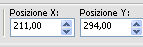 Imposta Posizione X: 211,00 e Posizione Y: 294,00.