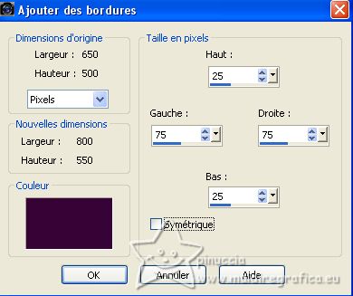Image>Ajouter des bordures, symétrique décoché, couleur d'arrière plan.