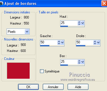49. Image>Ajouter des bordures, 1 pixel, symétrique, couleur rouge d'arrière plan.
