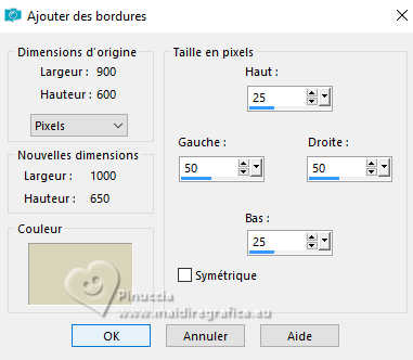 Image>Ajouter des bordures, symétrique décoché, couleur d'arrière plan.