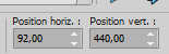Placer Position horiz.: 92,00 et Position vert.: 440,00.