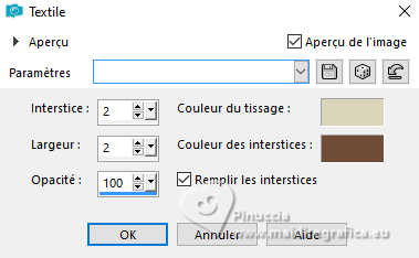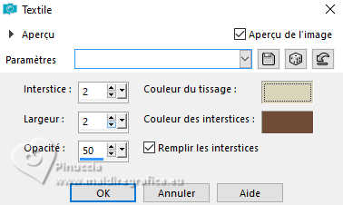 47. Effets>Effets de textures>Textile - change Opacité à 50