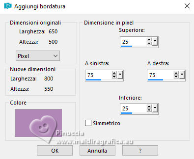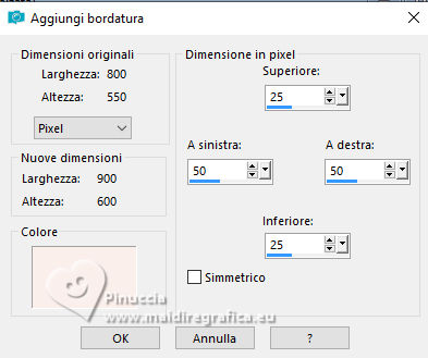 Immagine>Aggiungi bordatura, simmetriche non selezionato, colore di sfondo.