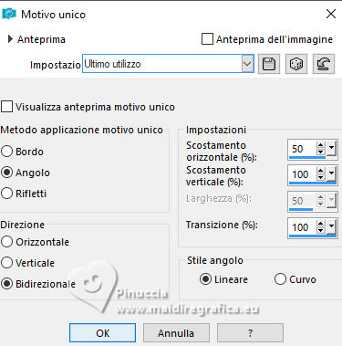 29. Effetti>Effetti di immagine>Motivo unico, con i settaggi precedenti, ma Orizzontale selezionato.