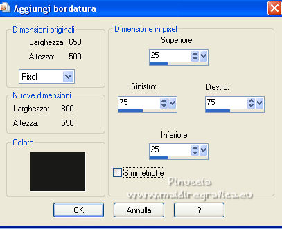 Immagine>Aggiungi bordatura, simmetriche non selezionato, colore di sfondo.