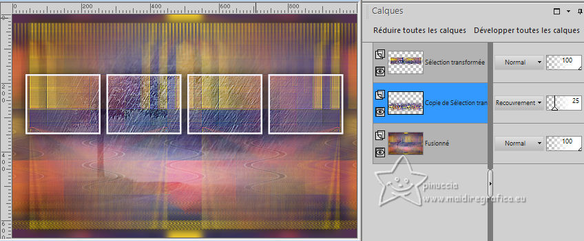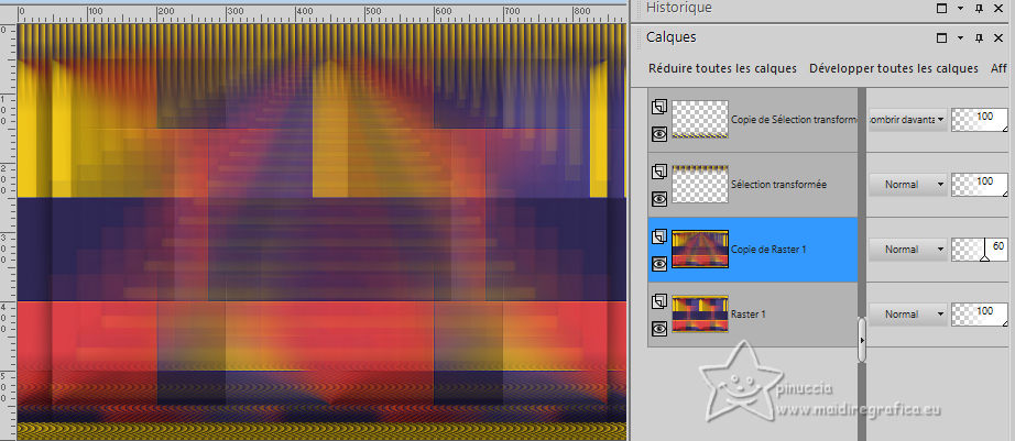 46. Calques>Agencer>Déplacer vers le bas et réduire l'opacité à 25%.