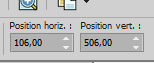 Placer Position horiz.: 106,00 et Position vert.: 506,00.