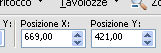 e imposta Posizione X: 669,00 e Posizione Y: 421,00.
