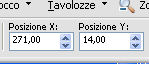 e imposta Posizione X: 271,00 e Posizione Y: 14,00.