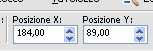 Imposta Posizione x: 184,00 e Posizione Y: 89,00.