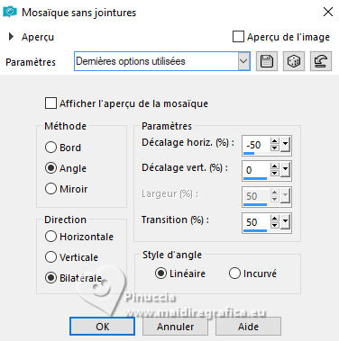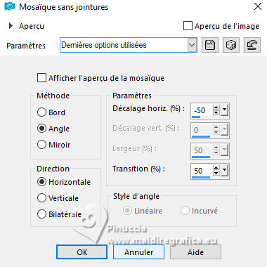 4. Effets>Effets d'image>Mosaïque sans jointures, par défaut.