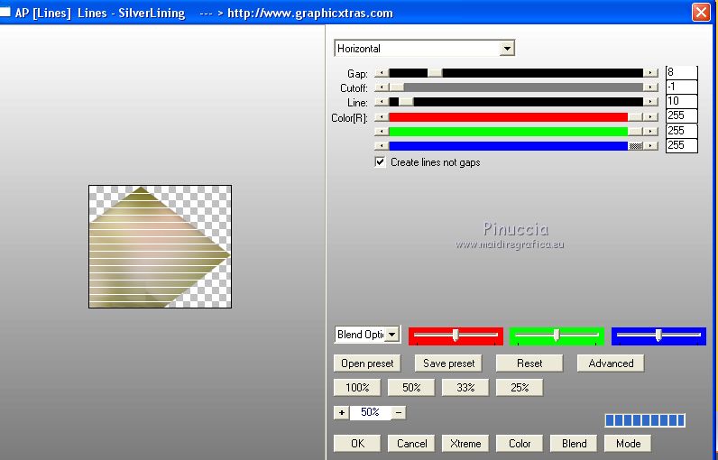 20. Effetti>Plugins>AP [Lines] - Lines SilverLining, Line Options: Vertical selezionato