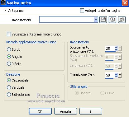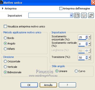 13. Effetti>Effetti di immagine>Motivo unico, con i settaggi precedenti, ma Bidirezionale selezionato.