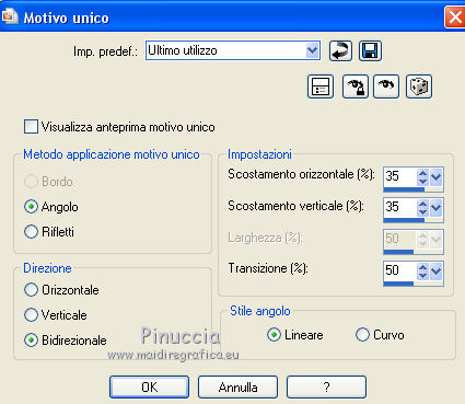 18. Effetti>Effetti di immagine>Motivo unico, con i settaggi precedenti.