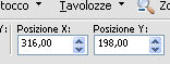 e imposta Posizione X: 316,00 e Posizione Y: 198,00.