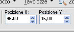 Imposta Posizione X: 96,00 e Posizione Y: 16,00.