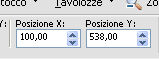Mantieni Posizione X: 100,00 e imposta Posizione Y: 538,00.