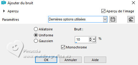 Réglage>Ajouter/Supprimer du bruit>Ajouter du bruit.