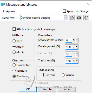 4. Effets>Effets d'image>Mosaïque sans jointures, par défaut.