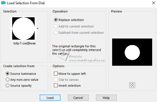 17. Selections>Load/Save Selection>Load Selection from Disk.